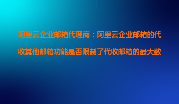 阿里云企業(yè)郵箱代理商:阿里云企業(yè)郵箱的代收其他郵箱功能是否限制了代收郵箱的最大數(shù)量? 隨著企業(yè)信息化程度的提高,企業(yè)郵箱已成為企業(yè)日常辦公中不可或缺的一部分。阿里云企業(yè)郵箱因其高效、穩(wěn)定、安全