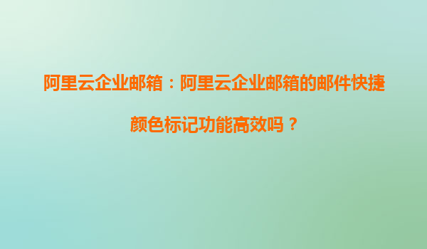 • 阿里云企業(yè)郵箱:阿里云企業(yè)郵箱的郵件快捷顏色標(biāo)記功能高效嗎? 一、阿里云企業(yè)郵箱簡(jiǎn)介 阿里云企業(yè)郵箱是阿里云為企業(yè)用戶提供的一款專業(yè)化的郵箱服務(wù)。作為阿里巴巴旗下的云計(jì)算品牌,阿里云憑借其