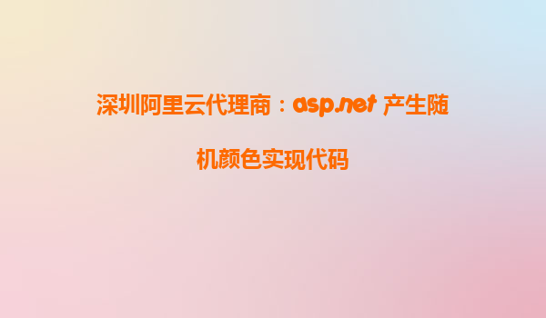 • 深圳阿里云代理商:asp.net產(chǎn)生隨機(jī)顏色實(shí)現(xiàn)代碼 一、標(biāo)題分析與內(nèi)容涵蓋 本文標(biāo)題“深圳阿里云代理商:asp.net產(chǎn)生隨機(jī)顏色實(shí)現(xiàn)代碼”涵蓋了三個(gè)核心要素:地理與服務(wù)主體(深圳阿里云代理商)