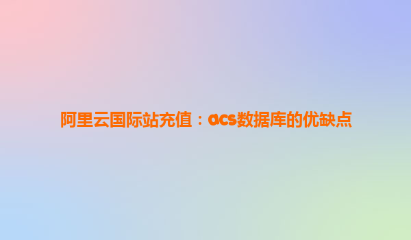 阿里云國際站充值:ACS數(shù)據(jù)庫的優(yōu)缺點 隨著云計算的不斷發(fā)展,各種云服務的選擇日益增多。在這其中,阿里云提供的云數(shù)據(jù)庫服務因其可靠性、性能、靈活性等優(yōu)勢,受到了越來越多企業(yè)的青睞。阿里云的數(shù)據(jù)庫服務,包