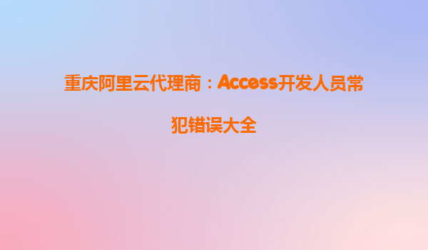 重慶阿里云代理商:Access開發(fā)人員常犯錯誤大全 隨著云計算技術(shù)的不斷發(fā)展,越來越多的企業(yè)和開發(fā)人員選擇阿里云作為其云服務(wù)的提供商。尤其是在重慶地區(qū),阿里云作為一個領(lǐng)先的云計算平臺,已經(jīng)幫助許多公司提升了