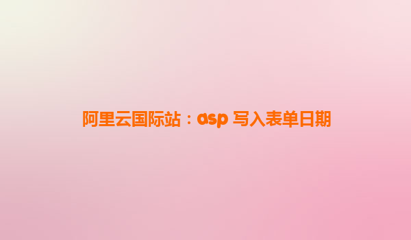 阿里云國(guó)際站:ASP寫(xiě)入表單日期的實(shí)踐與優(yōu)勢(shì)解析 標(biāo)題內(nèi)容分析 本文標(biāo)題“阿里云國(guó)際站:ASP寫(xiě)入表單日期”包含三個(gè)核心信息點(diǎn):