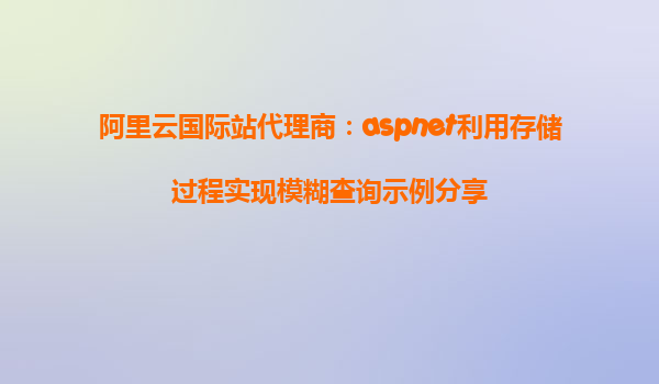 阿里云國際站代理商:ASP.NET利用存儲過程實現(xiàn)模糊查詢示例分享 隨著互聯(lián)網(wǎng)技術(shù)的不斷發(fā)展,越來越多的企業(yè)和開發(fā)者開始使用云計算平臺來部署和管理他們的應(yīng)用。阿里云作為領(lǐng)先的云計算平臺,憑借其全球化的數(shù)據(jù)中