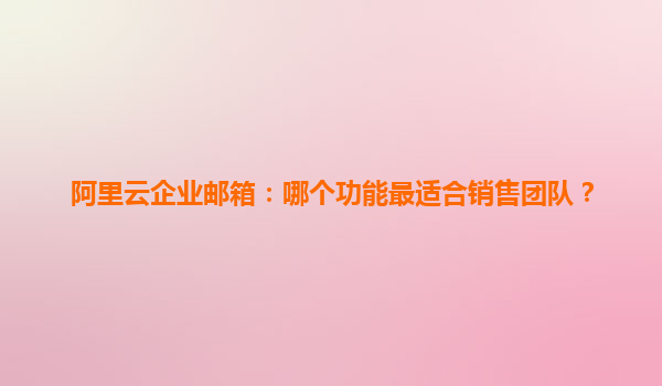 阿里云企業(yè)郵箱:最適合銷售團隊的功能解析 在當今這個信息化迅速發(fā)展的時代,企業(yè)郵箱成為了企業(yè)通信的重要工具。阿里云企業(yè)郵箱以其穩(wěn)定的性能、優(yōu)質(zhì)的服務(wù)和強大的功能,成為了眾多企業(yè)的首選。對于銷售團隊
