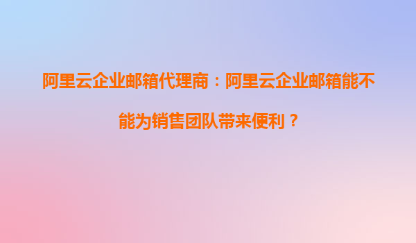 阿里云企業(yè)郵箱代理商:阿里云企業(yè)郵箱能為銷售團隊帶來便利嗎? 在當今數(shù)字化商業(yè)環(huán)境中,高效的溝通工具是企業(yè)成功的關(guān)鍵因素之一。對于銷售團隊而言,快速響應(yīng)客戶需求、高效協(xié)作以及數(shù)據(jù)安全至關(guān)重要。阿里