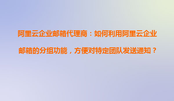 阿里云企業(yè)郵箱代理商:如何利用阿里云企業(yè)郵箱的分組功能,方便對特定團(tuán)隊發(fā)送通知? 一、阿里云企業(yè)郵箱的分組功能簡介 阿里云企業(yè)郵箱作為企業(yè)級通信工具,其分組功能(也稱為“郵件列表”或“群組”)是提升團(tuán)