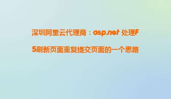 深圳阿里云代理商:ASP.NET處理F5刷新頁面重復(fù)提交的思路探討 在現(xiàn)代Web系統(tǒng)開發(fā)中,用戶體驗(yàn)和數(shù)據(jù)準(zhǔn)確性一直是重要的關(guān)注點(diǎn)。特別是在處理表單數(shù)據(jù)提交時(shí),如何避免因F5刷新導(dǎo)致的表單重復(fù)提交,成
