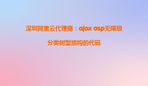以下是一篇關(guān)于如何使用深圳阿里云代理商提供的AJAX和ASP技術(shù)來實現(xiàn)無限級分類樹型結(jié)構(gòu)的文章。文章中將詳細(xì)介紹阿里云的優(yōu)勢,并以清晰條理的方式展開,最后進(jìn)行總結(jié)。 利用深圳阿里云代理商技術(shù)實現(xiàn)無