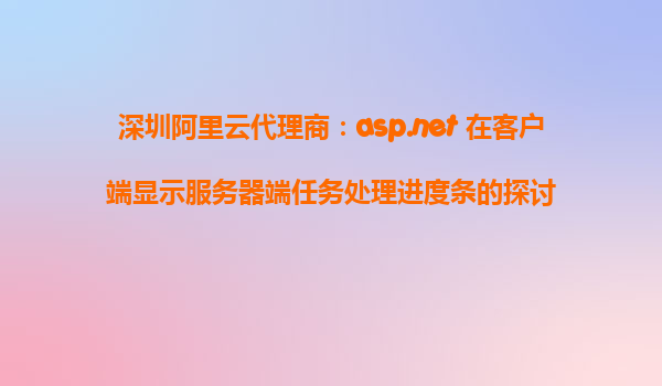 深圳阿里云代理商:ASP.NET在客戶端顯示服務(wù)器端任務(wù)處理進(jìn)度條的探討 一、前言 隨著信息化建設(shè)和企業(yè)數(shù)字化轉(zhuǎn)型的不斷深入,越來越多深圳本地企業(yè)選擇通過阿里云來部署和承載其核心業(yè)務(wù)系統(tǒng)。在