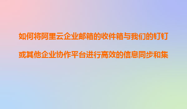 如何將阿里云企業(yè)郵箱的收件箱與釘釘?shù)葏f(xié)作平臺(tái)高效集成 一、阿里云企業(yè)郵箱的核心優(yōu)勢(shì) 阿里云企業(yè)郵箱作為國(guó)內(nèi)領(lǐng)先的企業(yè)級(jí)郵件服務(wù)解決方案,具備以下顯著優(yōu)勢(shì): 超高可用性