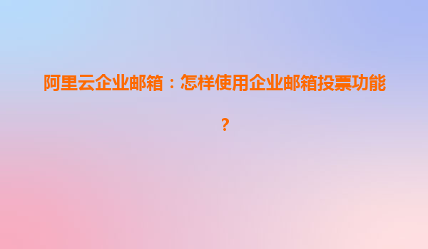 阿里云企業(yè)郵箱:怎樣使用企業(yè)郵箱投票? 一、阿里云企業(yè)郵箱的優(yōu)勢(shì) 在當(dāng)今數(shù)字化辦公環(huán)境中,企業(yè)郵箱不僅僅是溝通工具,更成為提升協(xié)作效率的重要平臺(tái)。阿里云企業(yè)郵箱憑借其穩(wěn)定、安