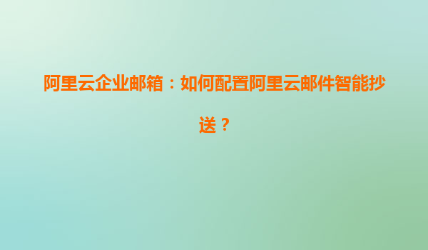 阿里云企業(yè)郵箱:如何配置阿里云郵件智能抄送? 一、阿里云企業(yè)郵箱的優(yōu)勢(shì) 阿里云企業(yè)郵箱作為一款專業(yè)的企業(yè)級(jí)郵件服務(wù),憑借其強(qiáng)大的功能、穩(wěn)定的性能和便捷的管理,成為眾多企業(yè)的首選。以下是阿里云企