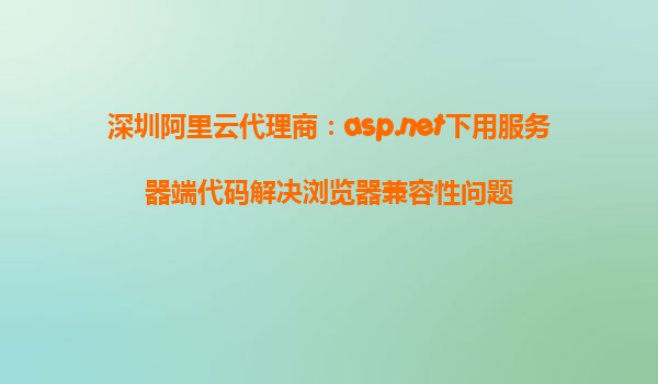 深圳阿里云代理商:asp.net下用服務(wù)器端代碼解決瀏覽器兼容性問(wèn)題 引言 隨著互聯(lián)網(wǎng)技術(shù)的快速發(fā)展,Web應(yīng)用在企業(yè)數(shù)字化轉(zhuǎn)型中扮演越來(lái)越重要的角色。然而,面對(duì)多樣化的用戶設(shè)備及瀏覽器環(huán)境,網(wǎng)