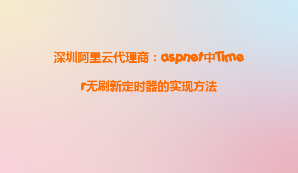 深圳阿里云代理商:ASP.NET中Timer無刷新定時器的實現(xiàn)方法 在現(xiàn)代Web開發(fā)中,很多業(yè)務(wù)場景需要實現(xiàn)定時器來自動執(zhí)行某些任務(wù),比如數(shù)據(jù)更新、通知推送等。而在ASP.NET開發(fā)中,Timer定時器是一個常見的方案。但在某