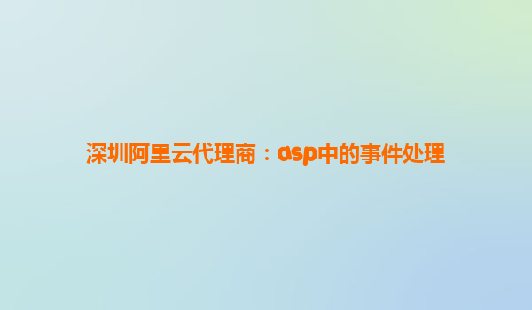 深圳阿里云代理商:ASP中的事件處理與阿里云優(yōu)勢解析 一、ASP事件處理基礎概念 ASP(ActiveServerPages)作為經典的服務器端腳本環(huán)境,其事件處理機制是實現(xiàn)動態(tài)網頁交互的核心。常見事件包括:
