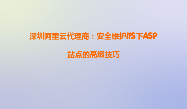 深圳阿里云代理商:安全維護IIS下ASP站點的高級技巧 在當今互聯(lián)網(wǎng)時代,網(wǎng)站安全問題越來越受到關(guān)注,尤其是使用IIS(InternetInformationServices)和ASP(ActiveServerPages)技術(shù)的站點。IIS作為微軟的Web服