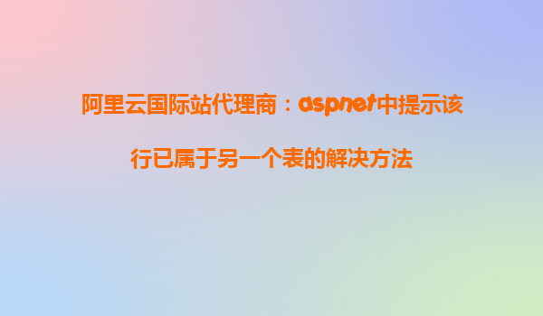 阿里云國(guó)際站代理商:ASP.NET中提示“該行已屬于另一個(gè)表”的解決方法 在使用ASP.NET開發(fā)過(guò)程中,很多開發(fā)者可能會(huì)遇到“該行已屬于另一個(gè)表”這一錯(cuò)誤提示。這一問(wèn)題通常發(fā)生在數(shù)據(jù)庫(kù)操作時(shí),尤其是在處