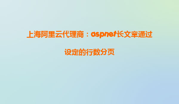 上海阿里云代理商:ASP.NET長文章通過設(shè)定的行數(shù)分頁 隨著信息技術(shù)的發(fā)展,企業(yè)越來越依賴云計(jì)算服務(wù)來支持其日常業(yè)務(wù)運(yùn)營。在這其中,阿里云作為中國領(lǐng)先的云計(jì)算服務(wù)提供商,憑借其強(qiáng)大的技術(shù)背景和廣泛的市場影