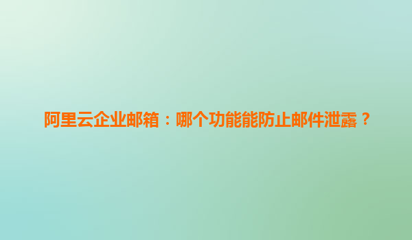 阿里云企業(yè)郵箱:哪個功能能防止郵件泄露? 隨著信息化時代的到來,電子郵件已經(jīng)成為企業(yè)日常溝通中不可或缺的工具。然而,郵件泄露事件時有發(fā)生,尤其是在敏感信息傳輸過程中,如何保障企業(yè)郵件的安全性成為了