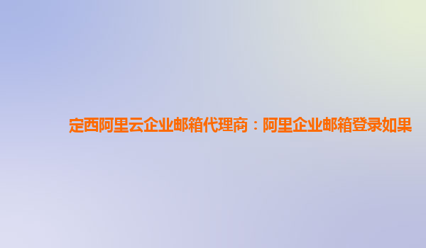 定西阿里云企業(yè)郵箱代理商:阿里企業(yè)郵箱登錄優(yōu)勢(shì)和好用之處 簡介 阿里云企業(yè)郵箱是由阿里云推出的一款專為企業(yè)用戶打造的高效、安全的企業(yè)郵件解決方案。作為定西地區(qū)的阿里云企業(yè)郵箱代理商,我們將為您
