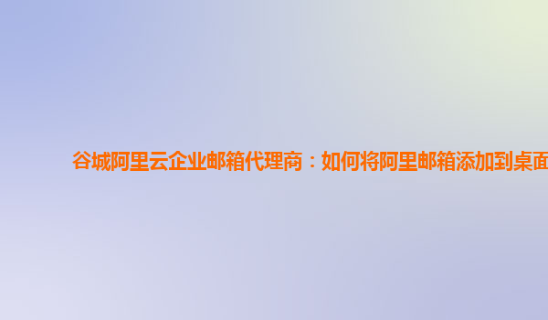 谷城阿里云企業(yè)郵箱代理商:如何將阿里郵箱添加到桌面 阿里云企業(yè)郵箱是專為企業(yè)用戶量身定制的郵箱服務(wù),提供穩(wěn)定可靠的電子郵件收發(fā)功能。作為谷城阿里云企業(yè)郵箱代理商,我們?yōu)槟峁└旖?、更便利的服?wù)。 步