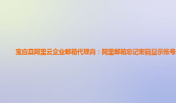 寶應(yīng)縣阿里云企業(yè)郵箱代理商:阿里郵箱忘記密碼顯示賬號(hào)異常 隨著互聯(lián)網(wǎng)的普及和信息化建設(shè)的推進(jìn),越來越多的企業(yè)選擇使用阿里云企業(yè)郵箱作為其官方郵箱服務(wù)。然而,在使用過程中,有時(shí)候會(huì)遇到一些問題,