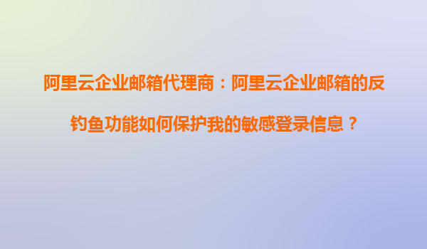 阿里云企業(yè)郵箱代理商:阿里云企業(yè)郵箱的反釣魚功能如何保護我的敏感登錄信息? 一、阿里云企業(yè)郵箱的核心安全優(yōu)勢 阿里云企業(yè)郵箱作為國內領先的企業(yè)級郵箱服務,依托阿里云強大的云計算技術,提供了多重