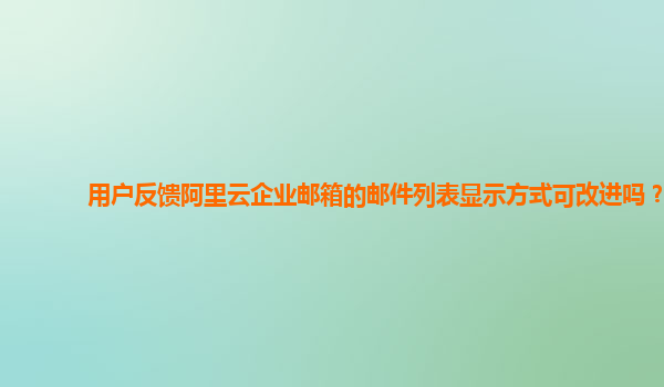 用戶反饋阿里云企業(yè)郵箱的郵件列表展示方式合理嗎? 引言 在現(xiàn)代商業(yè)環(huán)境中,企業(yè)郵箱已成為溝通的重要工具。阿里云企業(yè)郵箱憑借其多項優(yōu)勢,受到眾多企業(yè)的青睞。本文將分析用戶反饋阿里云企業(yè)郵箱郵件列表的展示