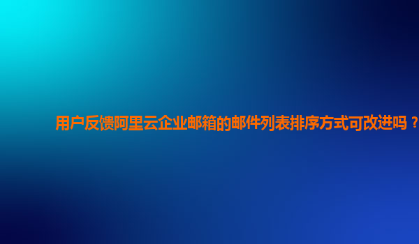阿里云企業(yè)郵箱:提升郵件列表排序方式的可改進性與優(yōu)勢 在現(xiàn)代企業(yè)中,電子郵件早已成為溝通的核心工具。阿里云企業(yè)郵箱,作為一款強大的郵箱服務(wù)平臺,為企業(yè)提供了多樣化的功能和便捷的管理方式。隨著