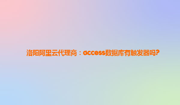 Access數(shù)據(jù)庫(kù)是否有觸發(fā)器? 作為洛陽(yáng)阿里云代理商,我們經(jīng)常遇到客戶對(duì)Access數(shù)據(jù)庫(kù)是否有觸發(fā)器的疑問(wèn)。今天,我們將會(huì)為大家詳細(xì)解答 Access數(shù)據(jù)庫(kù)是否有觸發(fā)器? Access數(shù)據(jù)庫(kù)默認(rèn)并不支持觸發(fā)器。觸發(fā)器