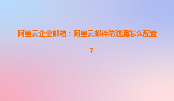 阿里云企業(yè)郵箱:郵件防泄漏配置指南 一、阿里云企業(yè)郵箱郵件防泄漏的重要性 在數(shù)字化辦公時(shí)代,企業(yè)郵箱承載著大量敏感信息,如客戶數(shù)據(jù)、財(cái)務(wù)報(bào)告、商業(yè)機(jī)密等。一旦發(fā)生郵件泄漏,可能導(dǎo)致企業(yè)聲譽(yù)受損