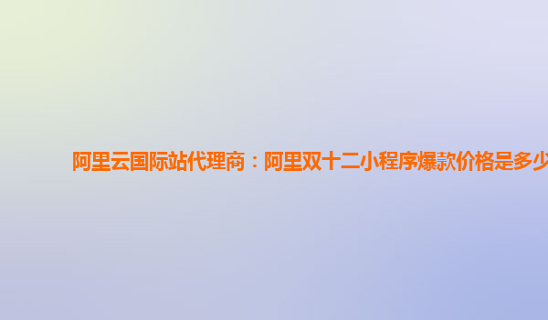 阿里云國際站代理商:阿里雙十二小程序爆款價格是多少 阿里云作為全球領先的云計算服務提供商,在國際市場上備受矚目。其強大的技術實力和優(yōu)質的服務受到了廣大客戶的青睞。作為阿里云國際站代理商,我們將為您