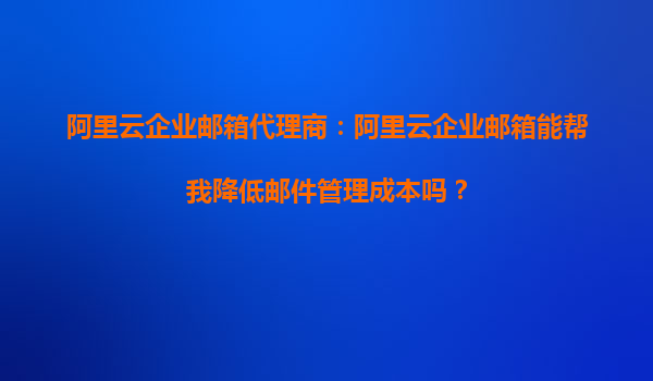 阿里云企業(yè)郵箱代理商:阿里云企業(yè)郵箱能幫我降低郵件管理成本嗎? 一、引言:企業(yè)郵件管理的成本挑戰(zhàn) 在數(shù)字化辦公時代,企業(yè)郵箱是日常溝通和業(yè)務(wù)協(xié)作的核心工具之一。然而,傳統(tǒng)的郵件系統(tǒng)往往