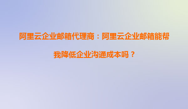 阿里云企業(yè)郵箱代理商:阿里云企業(yè)郵箱能幫我降低企業(yè)溝通成本嗎? 在當今數(shù)字化時代,企業(yè)溝通效率直接影響著運營成本和市場競爭力。許多企業(yè)管理者都在尋找既能提升溝通效率又能降低成本的解決方案