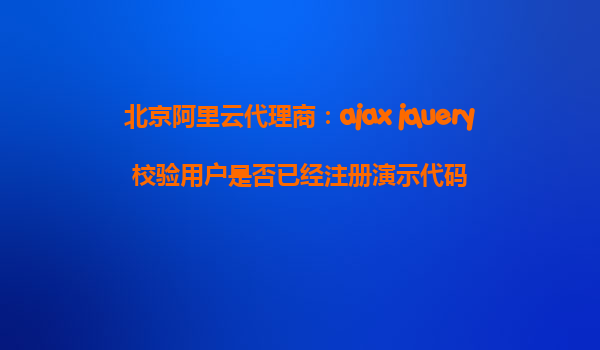 以下是一篇關(guān)于如何使用北京阿里云代理商提供的服務(wù),通過AJAX和jQuery來校驗(yàn)用戶是否已經(jīng)注冊(cè)的演示代碼的文章。文章結(jié)合了阿里云及其代理商的優(yōu)勢(shì),內(nèi)容條理清晰,簡(jiǎn)單明了,并以一段總結(jié)結(jié)束。 利用北