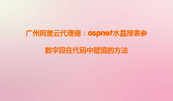 廣州阿里云代理商:ASP.NET水晶報表參數(shù)字段在代碼中賦值的方法 在開發(fā)應(yīng)用程序時,水晶報表是一個常用的報表工具,可以幫助開發(fā)者生成動態(tài)報表。在ASP.NET中使用水晶報表時,經(jīng)常會遇到需要在代碼中為報表參數(shù)字