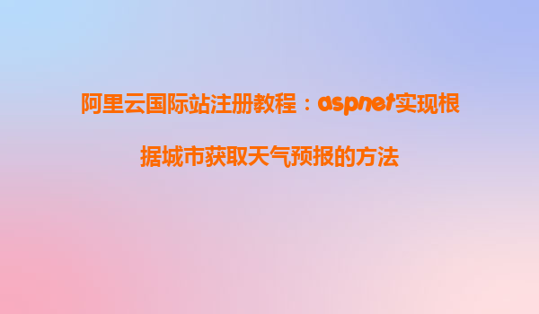 阿里云國際站注冊(cè)教程:ASP.NET實(shí)現(xiàn)根據(jù)城市獲取天氣預(yù)報(bào)的方法 在當(dāng)今的互聯(lián)網(wǎng)時(shí)代,云計(jì)算已經(jīng)成為企業(yè)和開發(fā)者不可或缺的一部分。阿里云作為全球領(lǐng)先的云計(jì)算服務(wù)商,不僅提供高性能、高可用性的云計(jì)算資源,