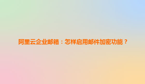 如何在阿里云企業(yè)郵箱中啟用郵件加密功能 在當今數字化快速發(fā)展的時代,電子郵件已成為企業(yè)通信的重要工具。阿里云企業(yè)郵箱作為市場上的佼佼者,不僅提供穩(wěn)定可靠的郵件服務,還特別注重用戶數據的