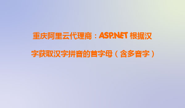 以重慶阿里云代理商:ASP.NET根據(jù)漢字獲取漢字拼音的首字母(含多音字) 在現(xiàn)代開發(fā)中,很多應用程序需要根據(jù)用戶輸入的漢字生成拼音首字母,尤其是在搜索、排序、輸入法等場景中,拼音首字母的提取顯得尤為重