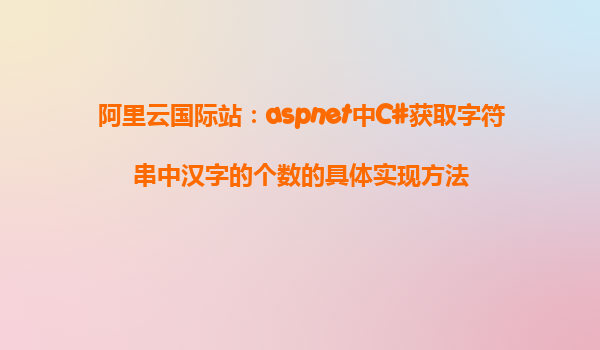 ASP.NET中C#獲取字符串中漢字的個數(shù)的具體實現(xiàn)方法 在ASP.NET開發(fā)中,我們經(jīng)常需要處理字符串,并對其中的漢字進行統(tǒng)計。本文將介紹如何使用C#獲取字符串中漢字的個數(shù),并結(jié)合阿里云的優(yōu)勢,探討如何在