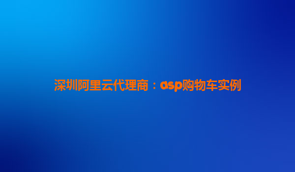 深圳阿里云代理商:ASP購物車實例解析與阿里云優(yōu)勢 一、引言:ASP購物車與云服務(wù)的結(jié)合 在電子商務(wù)快速發(fā)展的今天,ASP(ActiveServerPages)技術(shù)因其高效、靈活的特點,常被用于開發(fā)購物車系統(tǒng)。而深圳作為