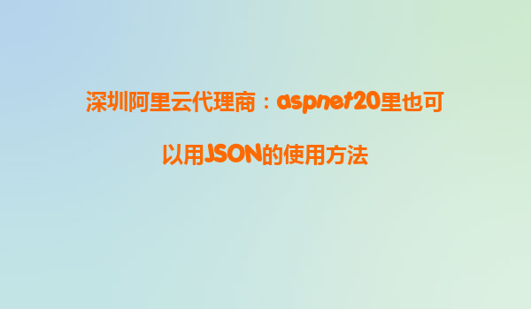 深圳阿里云代理商:ASP.NET20里也可以用JSON的使用方法 隨著技術(shù)的發(fā)展,JSON(JavaScriptObjectNotation)已經(jīng)成為現(xiàn)代Web應(yīng)用程序中常用的數(shù)據(jù)交換格式。在許多開發(fā)環(huán)境中,特別是ASP.NET中,開