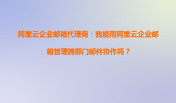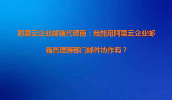 阿里云企業(yè)郵箱代理商:我能用阿里云企業(yè)郵箱管理跨部門郵件協(xié)作嗎? 一、阿里云企業(yè)郵箱的跨部門協(xié)作能力概述 作為阿里云企業(yè)郵箱代理商,我們經(jīng)常被客戶詢問:"阿里云企業(yè)郵箱能否有效管理跨部門郵件協(xié)作