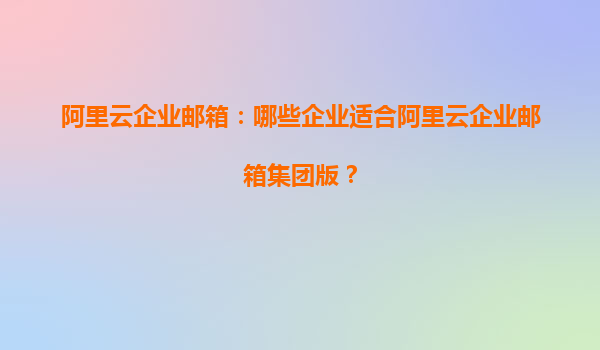 阿里云企業(yè)郵箱集團版:哪些企業(yè)適合選擇? 引言 在當(dāng)今數(shù)字化的商業(yè)環(huán)境中,企業(yè)郵箱不僅是溝通的工具,更是企業(yè)形象和效率的體現(xiàn)。阿里云企業(yè)郵箱集團版憑借其強大的功能和穩(wěn)定的服務(wù),成為眾多