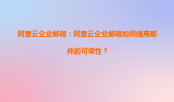 阿里云企業(yè)郵箱:阿里云企業(yè)郵箱如何提升郵件的可讀性? 隨著互聯(lián)網(wǎng)的發(fā)展,電子郵件已經(jīng)成為現(xiàn)代企業(yè)日常溝通的重要工具。然而,電子郵件的閱讀體驗(yàn)和有效傳達(dá)信息的能力常常受到多種因素的影響。為了解決