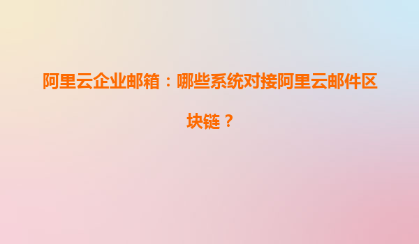 阿里云企業(yè)郵箱:哪些系統(tǒng)可對接阿里云郵件區(qū)塊鏈? 隨著數(shù)字化辦公的普及,企業(yè)郵箱已成為現(xiàn)代企業(yè)不可或缺的通信工具。阿里云企業(yè)郵箱憑借其穩(wěn)定性、安全性和豐富的功能,成為眾多企業(yè)的首選。而阿里云郵件區(qū)